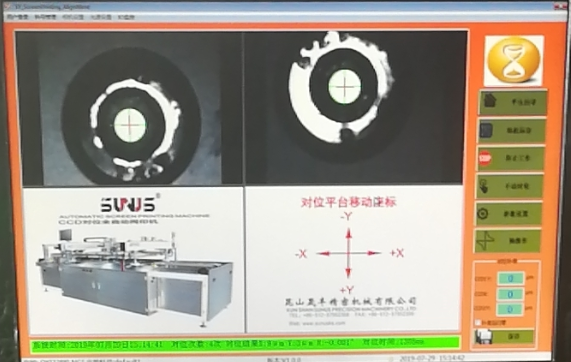 本机跟客户生产线对接,承印物从输送线的上道工序输送到进料端的初定位装置上,然后上料位的机械手将初定位装置上的承印物,夹紧取起放料到CCD位的印刷台板上。