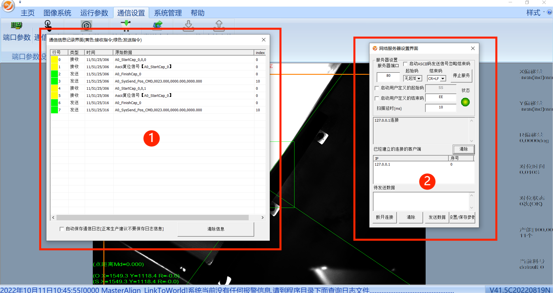 MasterAlign_LTW(下文中简称为MA_LTW)为双翌自主研发的视觉对位系统应用软件,软件中的通讯日志可方便我们进行整个通讯流程的接收和查询流程进行分析,详情见文档所示:
