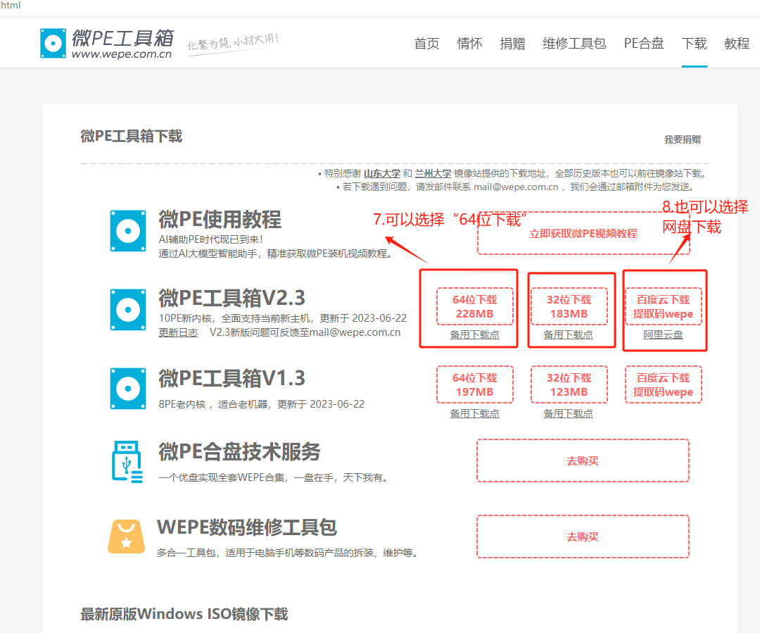 2. 在winpe官网上下载“WePE_64_V2.3.exe”程序文件