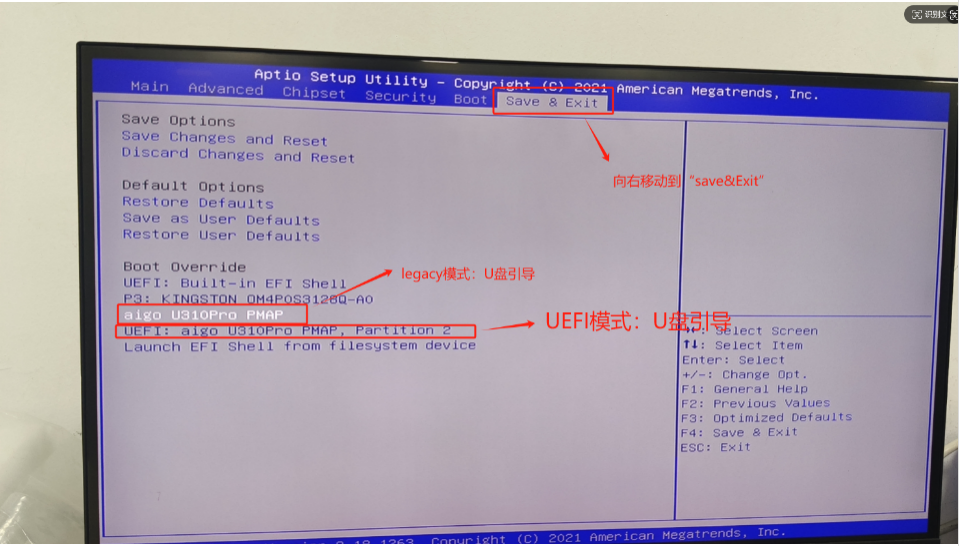 5. 这里我们已经确认了是legacy模式的引导所以选择“aigo U310Pro PNPA”,并按键盘的“Enter”键