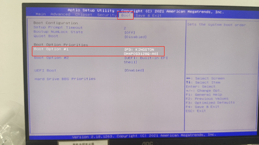选中“Boot Option #1”,按键盘上的“Entel”