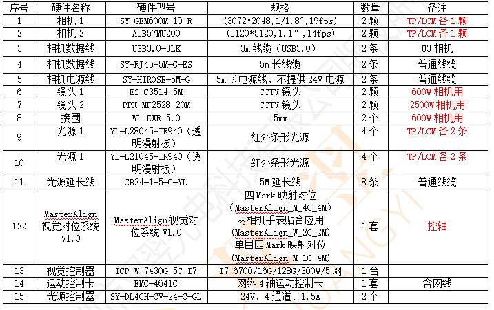 配置清单如下: