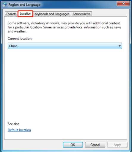 2、区域和语言->位置->选择“日本”->应用->再选择“中国”->应用;