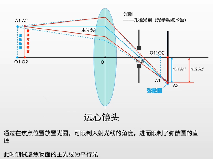 物方远心镜头将孔径光阑放置在光学系统的像方焦平面上,使物方主光线平行于光轴。