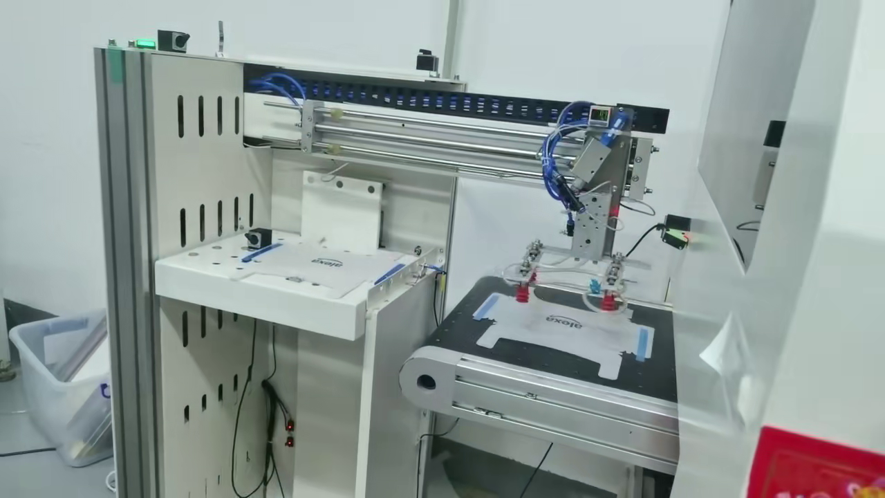 当产品在皮带线上移动至摄像区域时,系统通过相机获取待贴合产品的图像,随后利用特征提取算法识别边缘、角点或特定图案。
