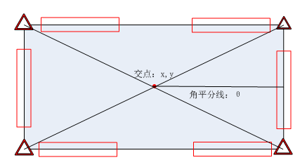 纠偏方法:以AC连线和BD连线交点计算产品XY中心位置,以AC连线和BD连线的角分线的角度计算θ。