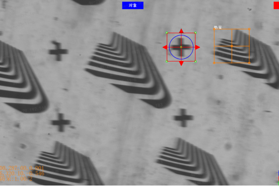 检测原理:增加一个灰度选取框,用于辅助主模板抓点防呆,在主模板抓点OK后,检测产品Mark点附近的固定位置上是否有符合产品工艺的灰度特征,相当于多了一道防错机制。
