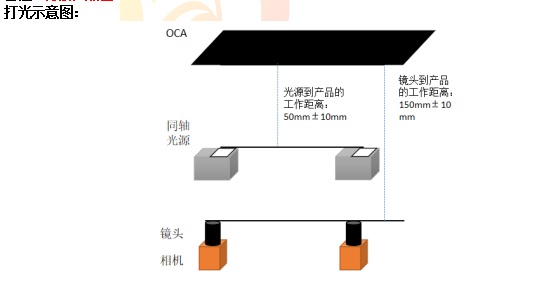 一组相机专门负责透明的OCA胶层。采用蓝色同轴光源,透过相机镜头中心的特殊分光镜,垂直照射在OCA材料上。 同轴光的原理在于,它只接收与被测物表面严格垂直的反射光。对于透明且光滑的OCA表面,这种垂直照射能最大化地捕捉其边缘因微观起伏或掺杂粒子产生的微弱散射光,从而在图像中勾勒出清晰、锐利的轮廓。