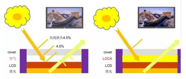 2、填充ITO玻璃和Cover Glass之间的空隙,提高亮度