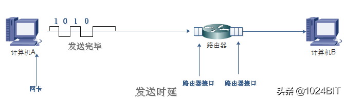 下面就以计算机A要给计算机B发送数据为例,来说明网络中的时延包括那几个部分。