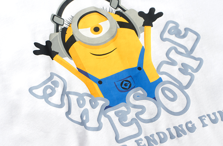 水浆印花::它是丝网印中最基本、成本最低的一种印花工艺,能够在棉、涤纶等多种面料上印制图案。工作原理近似于染色,但水浆印花是将面料的某一区域印染成所需要的颜色。它的优点是透气性好,比较不会影响面料原有的质感,几乎可以在所有的浅底色面料上印花,花位牢度很好,一般不会掉色,能用相对低的价格印出好的效果;但在深色面料上无法应用,而且只能单色(除非色块隔离)。
