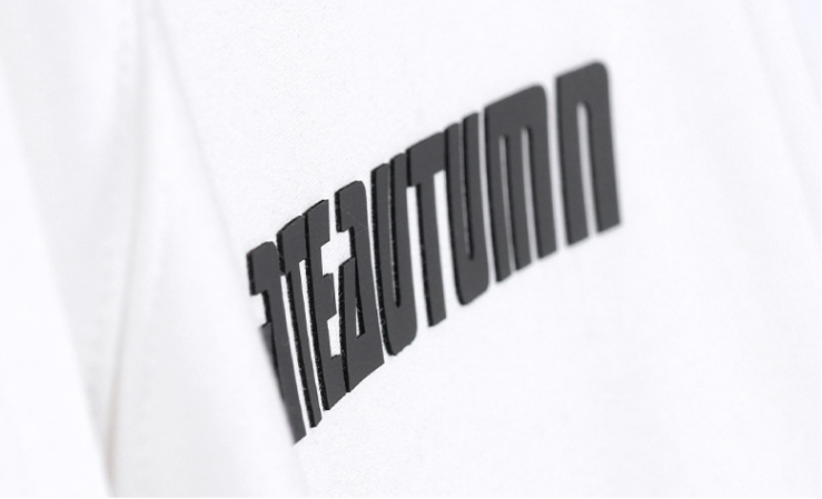 厚板印花::厚板印花也叫立体厚板印,是源于胶浆的基础上,它就好像是胶浆反复地印了好多层一样,它能够达到非常整齐的立体效果,一般来说工艺要求比较高,适宜用在比较运动休闲型的款上,图案方面一般采用数字、字母、几何图案、线条等,线条不宜太幼,用来印logo都是非常精致美观的。也有人别具一格用来印花卉图案,见于秋冬装皮料或较厚的面料上。