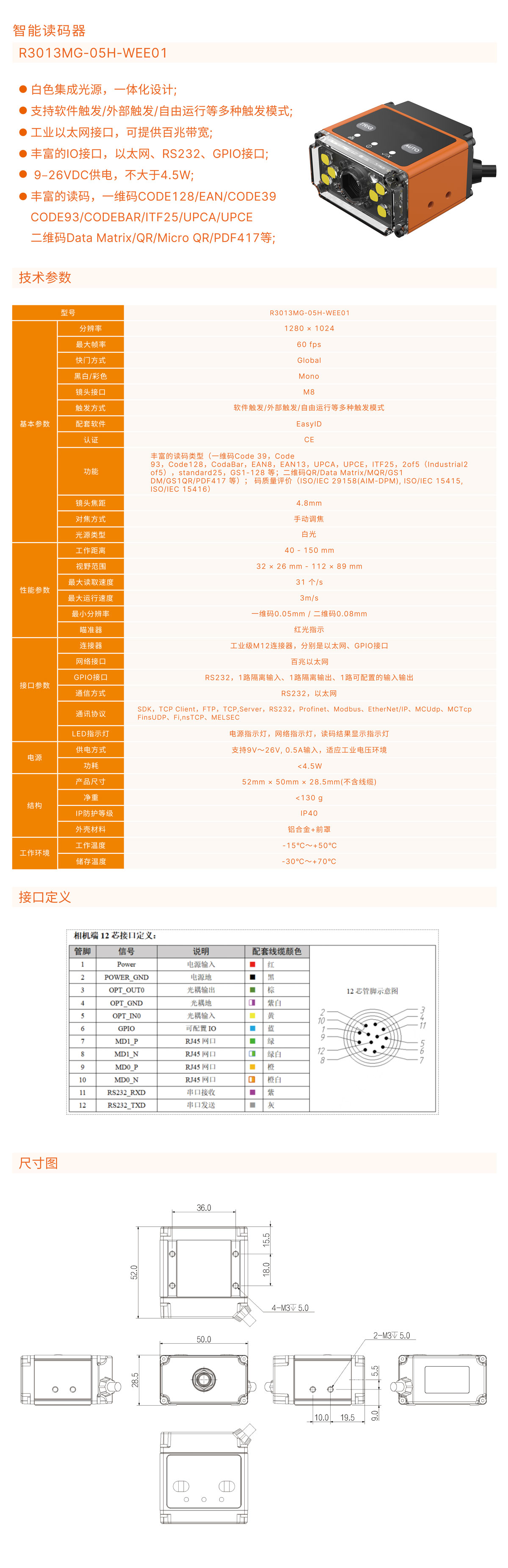 ● 丰富的读码,一维码CODE128/EAN/CODE39/CODE93/CODEBAR/ITF25/UPCA/UPCE,二维码Data Matrix/QR/Micro QR/PDF417等。